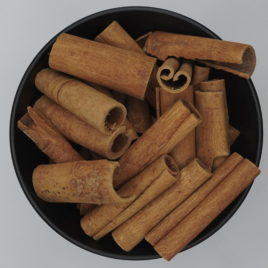 Rica em compostos aromáticos naturais, a canela é valorizada tanto pelo seu perfil sensorial quanto por seu uso tradicional em práticas voltadas ao bem-estar.